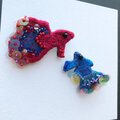 刺繍糸で、尾びれにはスパンコールをたっぷり。