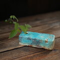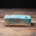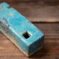 お菓子のような形の細長い一輪挿しです。四角く叩いて固めた土をくり抜き、蓋をして穴を開けました。