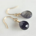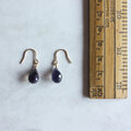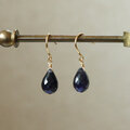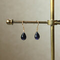 ぷっくりとした濃紺のアイオライトをシンプルなピアスにしました。ピアスフックとワイヤーは14KGFを使用しています。