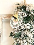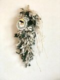 ジュニパーリーフにタタリカとラスカスを使いキラキラ舞う雪をイメージしたホワイトクリスマススワッグ制作しました。