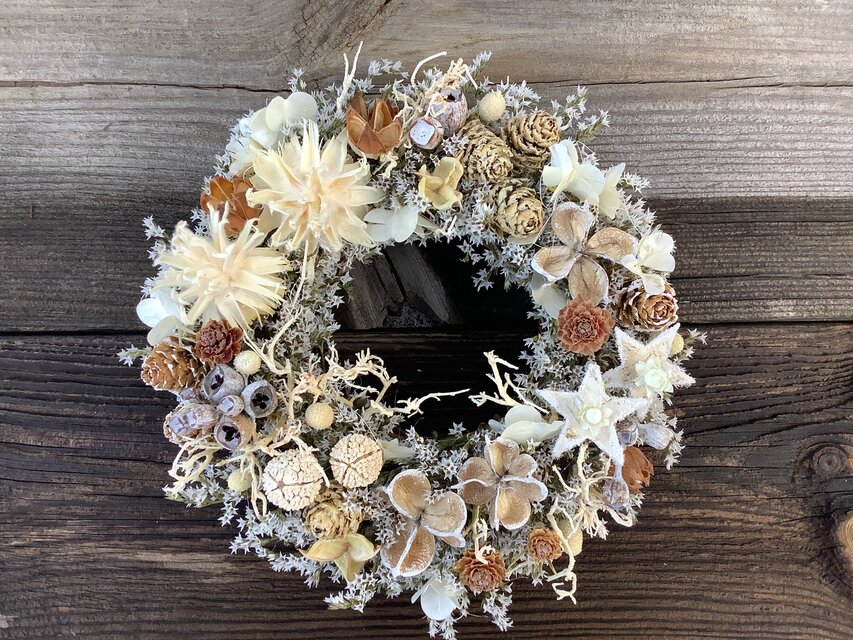 しっとりした大人色のリースで、とても素敵です。 毎回、素敵な作品をありがとうございます。