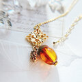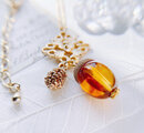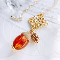 美しい琥珀色のどんぐりのロングネックレス Acorn です