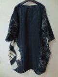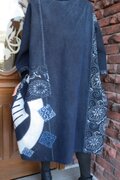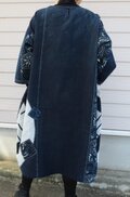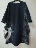 古布リメイク 家紋と型染のコクーンワンピース 古布藍染 型染 刺し子 オリジナル 着物リメイク ゆったりサイズ
