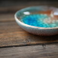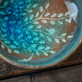 陶土の上にガラスを溶かした水たまりの様なお皿です。