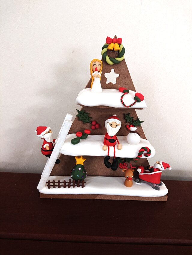 三人のサンタさん、可愛らしくて思わずにっこり(о´∀`о)そりにリースにツリー。