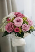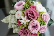 ピンクを基調にオールドローズや小菊、チューベローズを入れて華やかでエレガントに仕上げました。