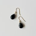 14kgf 天然石モリオン(黒水晶)のティアドロップピアス・イヤリング