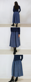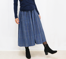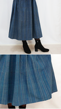 SALE☆手織り綿絣ロングスカート、インディゴ縦縞、オールシーズン
