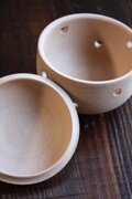 素焼きのガーリックポットです。