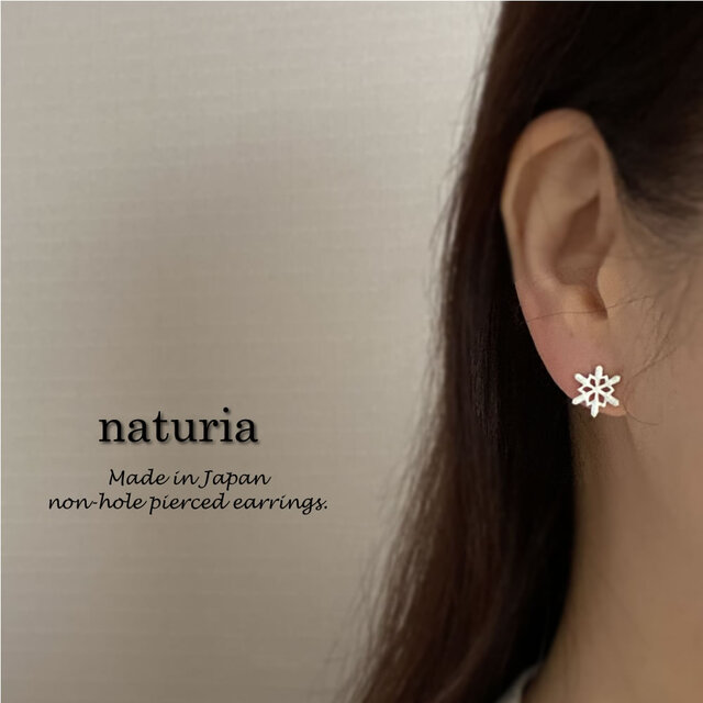 雪の結晶をモチーフにしたノンホールピアスです。