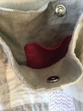 内布は厚手生成りリネン、赤いポケットが一つ付いています。