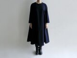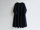 紺色・無地の生地のシックな雰囲気を活かして、たっぷりとしたフレアのワンピースに仕立ててみました。