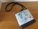 リバティ ブルー系のイルマとバイオウオッシュ帆布でミニミニショルダーバッグを作りました。