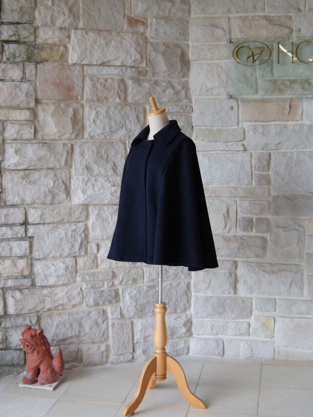 【エレガント ケープコート】ミステリアス ミッドナイト ダークネイビー 高級アンゴラウール