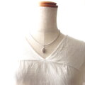 薄いシルバーグレー色の綿の糸を編み込み、味わいのある模様が入ったライトグレー~ライトブラウンのシルバーリーフジャスパーに照りの美しいシルバー色の淡水パールを添えてトップに配した、ナチュラルで上品な雰囲気のペンダントです。