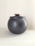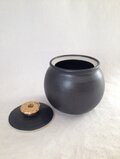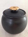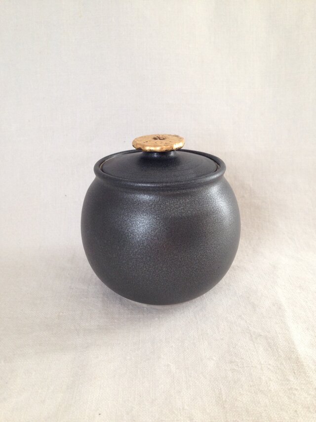 半磁器土でろくろ成形後、黒いマットな釉薬を使用しています。