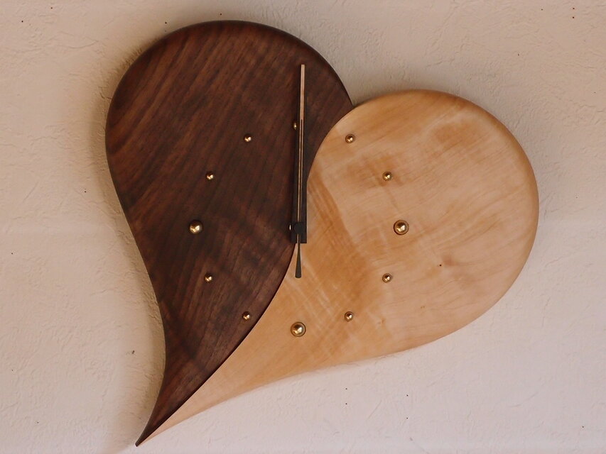 すべて手作りで、縮み杢のトチと縮み杢のブラックウォールナットの無垢板を使用して、ハートをモチーフにシンプルなデザインに仕上げました。