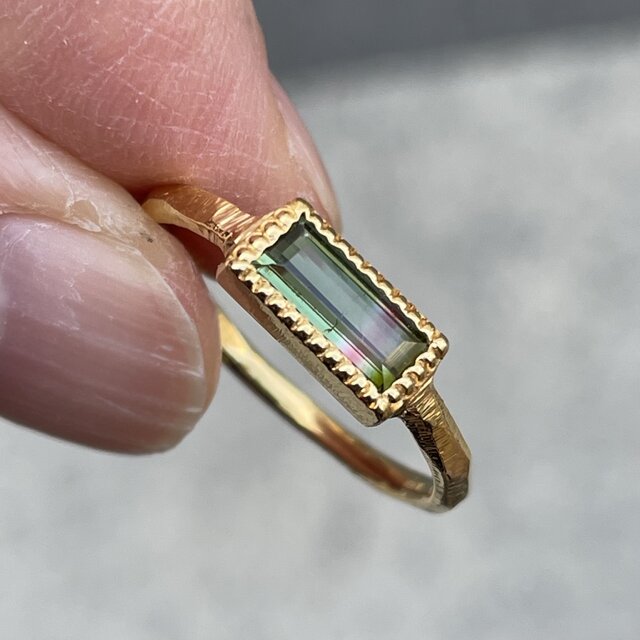 バイカラートルマリン0.61ct バゲットカット green&pink シルバーSV925リング