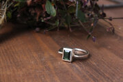 深緑色のスクエアのトルマリンの石を留めたリングです。