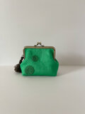 緑色のリネン生地に緑色でドット模様の刺繍をしました。