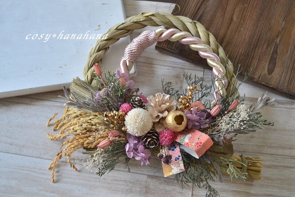 素敵なしめ縄をありがとうございます。写真で見て一目ぼれしました。 実物もとても素敵で、色合いとデザインに上品な華やかさを感じました。 「盛福」という名前もぴったりで、見るたびにときめきます(^^)