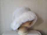 魅せる帽子☆ふんわり♪フェイクファーとアンゴラ混ニットのクロッシュ~オフホワイト