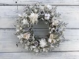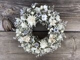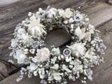 白い花材を集めて、Wreathを作りました。タタリカをベースに、かすみ草、綿殻、スターコーン、ボラフラワー、ナンキンハゼ、芋つるなど微かな色の違いの素材の組み合わせを華やかさをお楽しみください。
