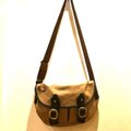 パラフィン加工+バイオウォッシュ加工の帆布、ベージュとクロコ型押し イタリアンレザーのこげ茶をあわせた