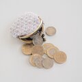 手のひらに収まるくらいの小さな丸型のがま口コインケースです。