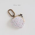 ■ヴィンテージファブリックの丸型がま口コインケース / 白にブルーの花柄■ cloche(vf-stwb)