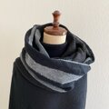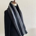 ボーダー/ストライプ/しましま/スヌード/ネックウォーマー/マフラー/ストール/首元/おしゃれ/首/アクセント/素敵/大人/コーデ/巻物/あたたかい/冬/秋/ファッション/レディース/メンズ/コーディネート/冷え予防/冷え対策/防寒/かっこいい/モード/ギフト/贈り物/プレゼント/10代/20代/30代/40代/50代/60代/70代/お出かけ/旅行/通勤通学/男女兼用/ユニセックス/黒/グレー/灰色/ブラック/冬支度・ハンドメイド・手作り