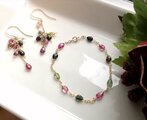 /初秋/新作/秋/秋色/冬/クリスマス/Xmas/トルマリン/マルチカラー/黒/ピンク/グリッター/天然石/ギフト/プレゼント/ゴールド/イヤリング/14kgf/ブレスレット/ピアス