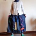 古着物リメイク☆大島紬など藍中心にパッチ&パッチの大人スカート80cm丈