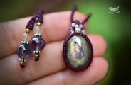 ◆このたびはボルドー色の蝋引き糸を使用しマクラメ編み装飾を施しました。