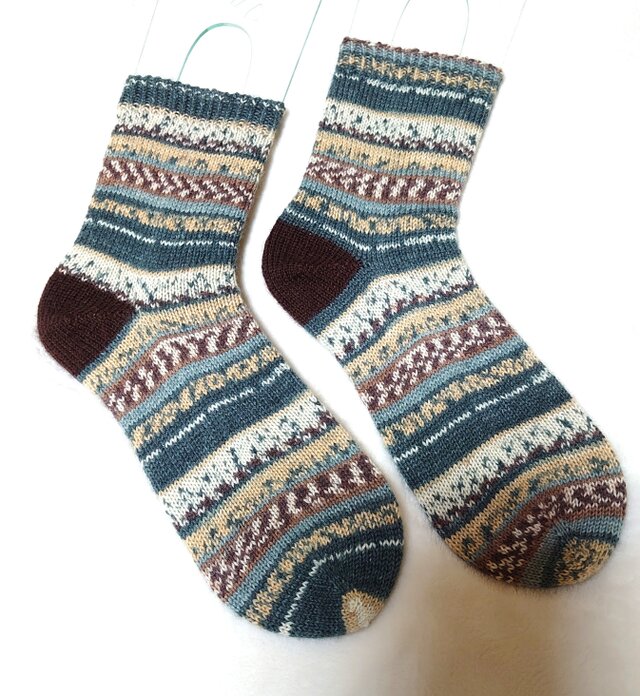 ドイツ製 靴下用毛糸 OPALで編んだメリヤス編みの靴下です。