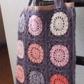 天然染料で染めたウールをモチーフに編んで、つなげたぺたんこバッグです。