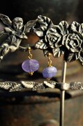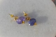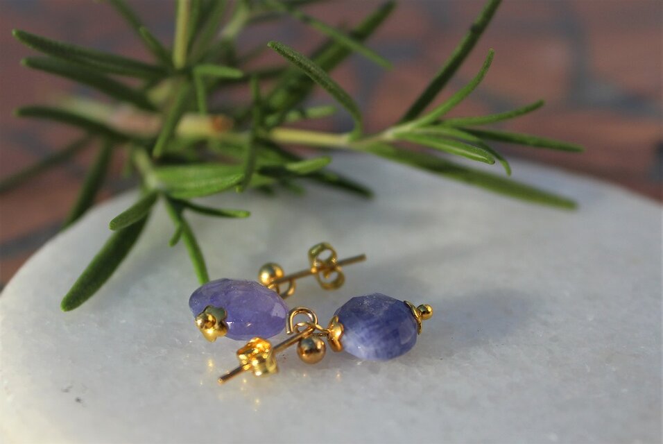 美しいブルーのタンザナイトの、カッティングビーズのゴールドピアスです。