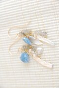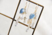 ブルーオパールとケシパール、ラブラドライトのフリンジ付きピアス14kgf