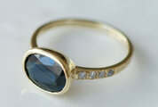 光や角度によって色が変わって見えて楽しくも美しい指輪です。サイドの小さなダイヤもキラキラしてかわいいです。嬉しくて毎日つけています。ありがとうございました。