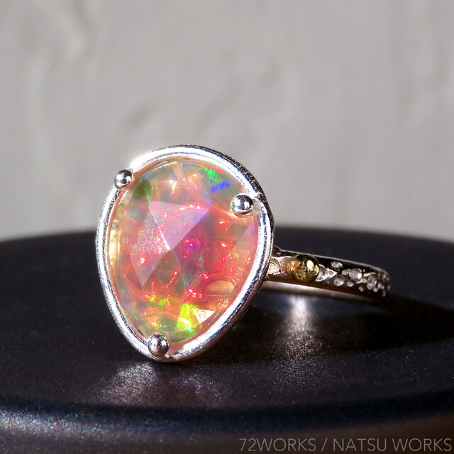 ローズカットが施されたエチオピアオパールを使用したリング。