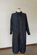 大島紬リメイク スタンドカラー襟ぐりタックワンピース