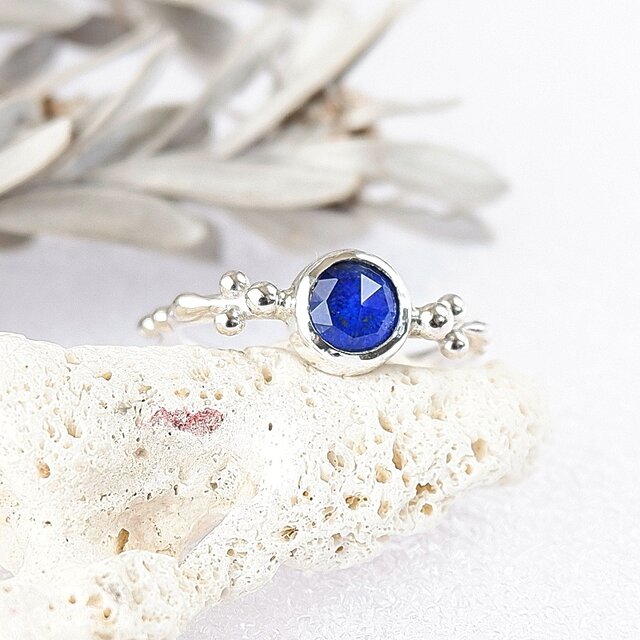 ラピス×クリスタルの粒飾りリング 11.5号 (再販)