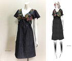 【1点もの・デザイン画付き】岡山産デニム+ゴブラン織りレースギャザーワンピース(KOJI TOYODA)