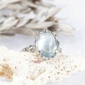 優しい色合いのアクアマリンのカボションを粒飾りのリングに仕上げました。