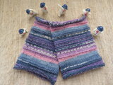 ブルーグラデーションに少しピンクがミックスになった毛糸で編んでおります。
