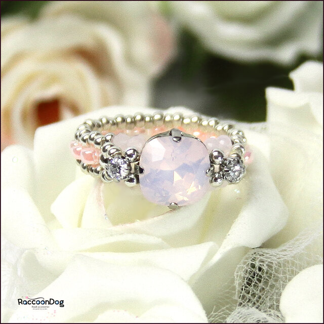 ビーズ,リング,コスチュームジュエリー,ビーズアクセサリー,ビーズリング,ビーズ指輪,ジルコニア,スワロフスキー,ローズウォーター,クリスタル