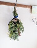 ヒムロスギ、クジャクヒバ、野バラの実、ナンキンハゼ、シャリンバイなどを使ったドライフラワースワッグです。
