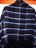 手織り 冬物 ウールポンチョ 紺色 防寒