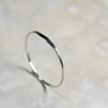 0.8mm幅の華奢な柔らかいフォルムのリングに、アクセントにワンポイントで槌目を打ち込み、フラットな面を作り込んだデザイン。仕上げは美しい鏡面加工を施しています。主張しすぎず指先にさりげなくアクセントをプラスしてくれます。シーズン問わず普段使いのアクセサリーとして幅広いスタイリングに対応でき、お手持ちのジュエリー・リングと重ね付けでご着用頂くこともお勧めです。ペアリングやマリッジリングにもお使い頂けます。
