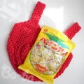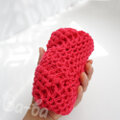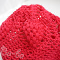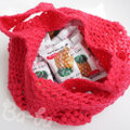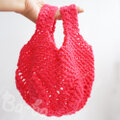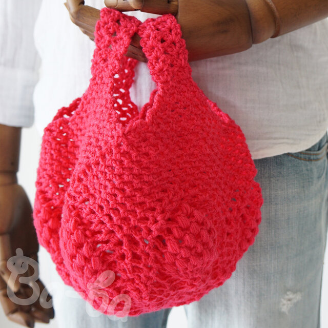 パッと鮮やかなピンクの毛糸を編み込んで小さな手さげ袋にしました。